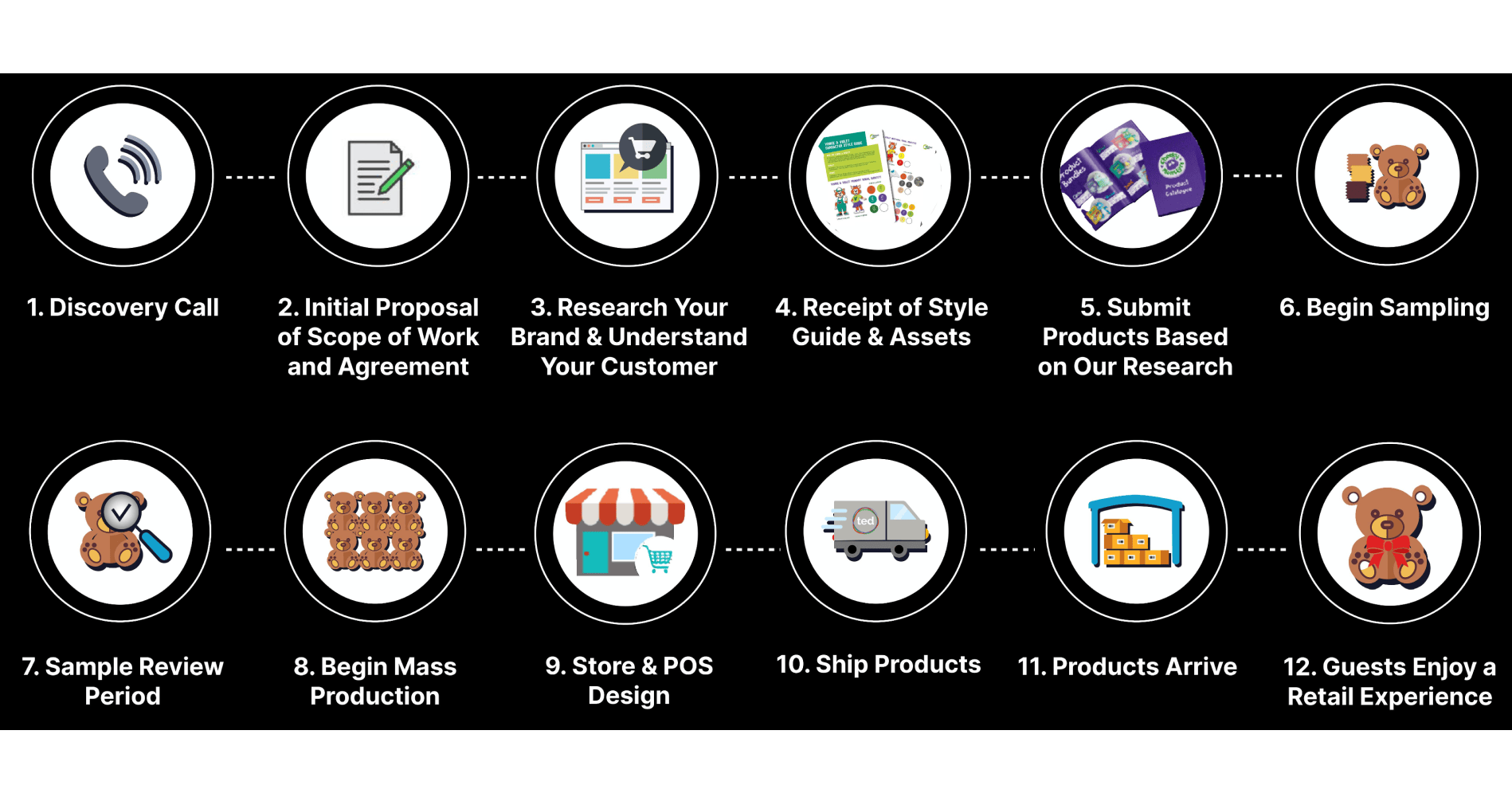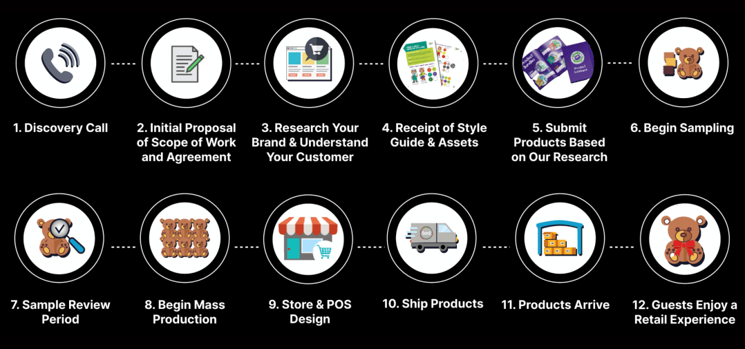 Let your guests take a piece of the experience home with bespoke souvenir merchandise. We cover everything: product briefing, design, packaging, point-of-sale solutions and even worldwide delivery of mass production—all utilizing the most sustainable processes possible. We deal directly with the source to get the best price, reliability and quality control for your products, and can also design your retail space to increase dwell time and drive ROI.